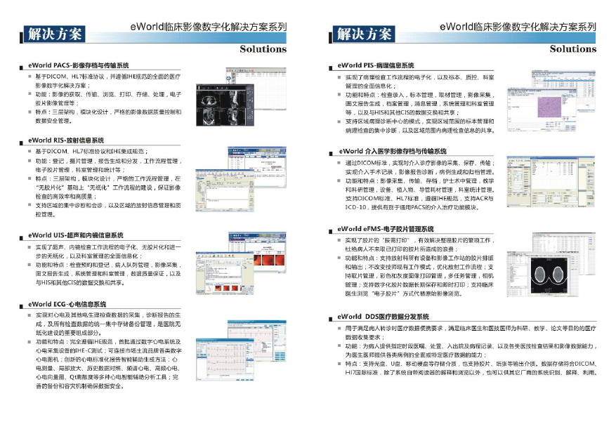 PACS系统是Picture Archiving and Communication Systems的缩写,意为影像归档和通信系统。医学影像信息系统简称PACS系统,狭义上是指基于医学影像存储与通信系统,从技术上解决图像处理技术的管理系统。在现代医疗行业,医学影像信息系统是指包含了RIS,以DICOM3.0国际标准设计,以高性能服务器、网络及存储设备构成硬件支持平台,以大型关系型数据库作为数据和图像的存储管理工具,以医疗影像的采集、传输、存储和诊断为核心,是集影像采集传输与存储管理、影像诊断查询与报告管理、综合信息管理等综合应用于一体的综合应用系统,主要的任务就是把医院影像科日常产生的各种医学影像(包括核DR、超声、各种X光机等设备产生的图像)通过DICOM3.0国际标准接口(中国市场大多为模拟,DICOM,网络等接口)以数字化的方式海量保存起来,当需要的时候在一定的授权下能够很快的调回使用,同时增加一些辅助诊断功能。
