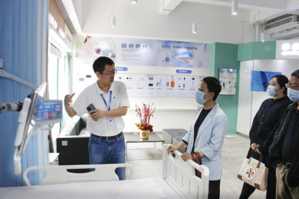 林董陪同姚副局长一行先后参观了全视通智慧医院体验馆、营销中心、研发中心以及制造中心。在交流座谈中,林董就公司的发展历程、大健康行业背景、拳头产品及企业的发展规划一一进行了介绍,全视通在2021年成功转型,切入大健康行业,以智能硬件为核心,主要服务于智慧医院、智慧养老、智慧社区三大领域,当前构建的全国研发及技术服务团队能够全面满足医康养护理智能化的一站式需求,具有较为广阔的市场前景。