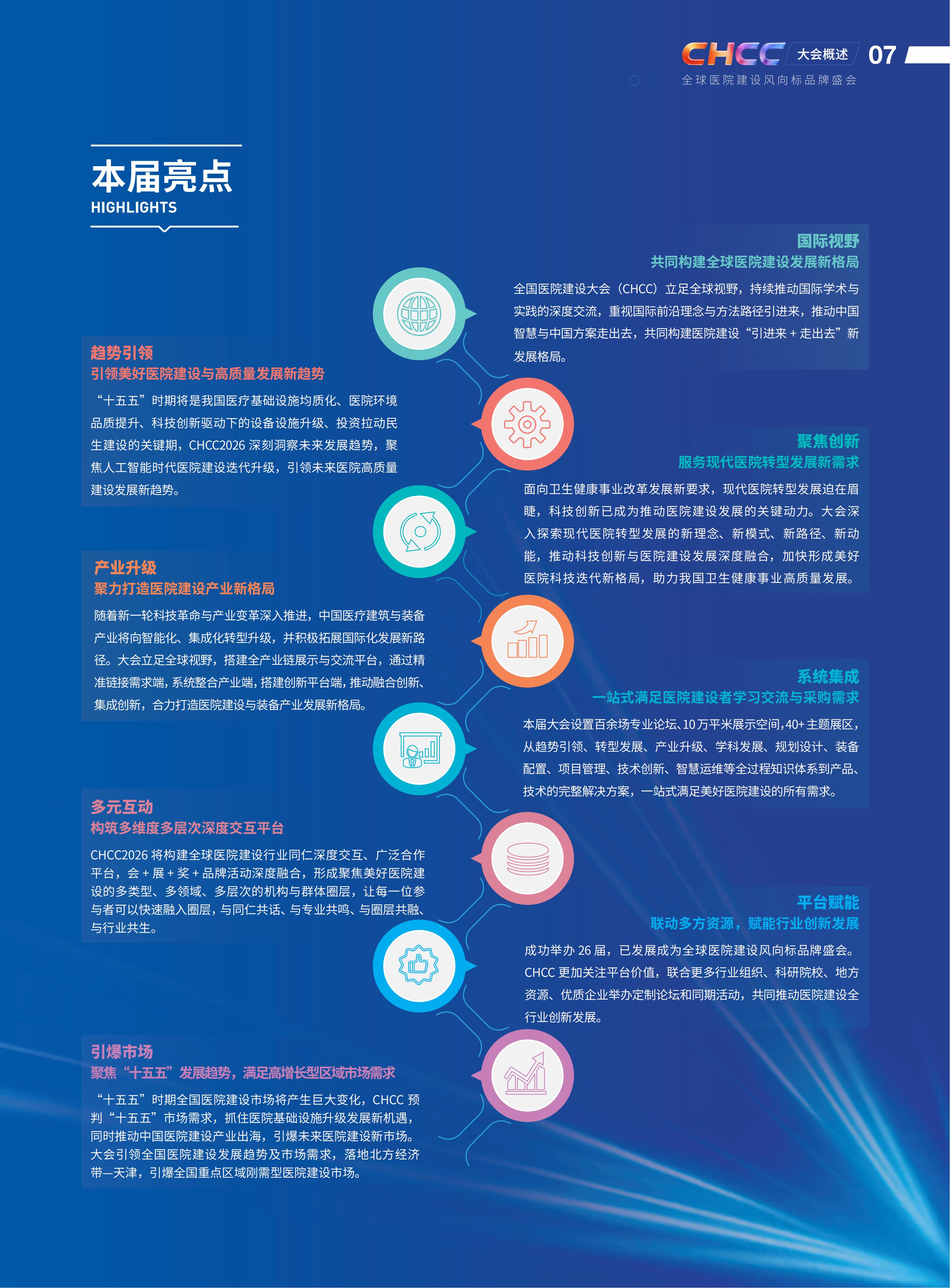 同时,CHCC2026 深刻洞察全球医院建设新需求,响应国家“一带一路”倡议,设立“推动中国医院建设产业出海”第二主题,立足我国现代医院建设完整知识体系与产业链优势,搭建国际化资源对接平台,积极探索我国医院建设产业全球布局的有效路径,向世界输出中国智慧与中国方案!