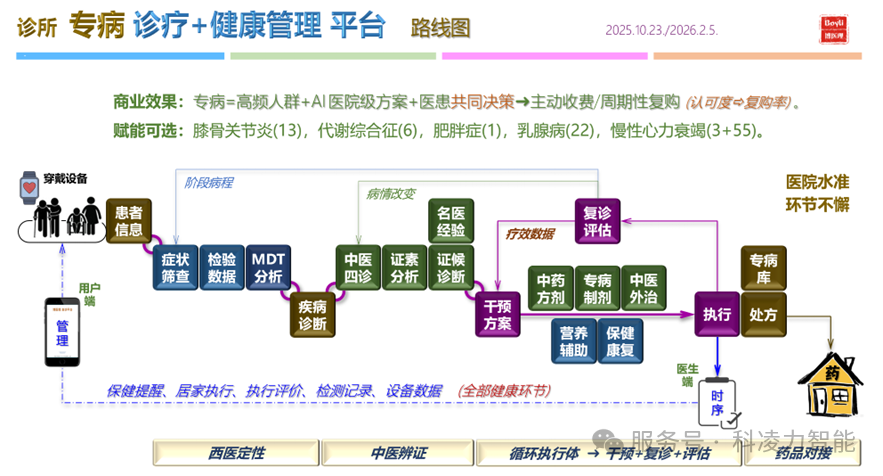 诊所“专病”定向的目的:简化作业、设定质量、方便营销、有利收费。若说“专病”的患者价值,一是中/西医诊疗,二是全程管理。下图,每一步都是为医院级高端服务而设计,具有严密的逻辑执行张力。基于中医操作系统,我司有能力为您定制任何您想要的专病或专科服务。