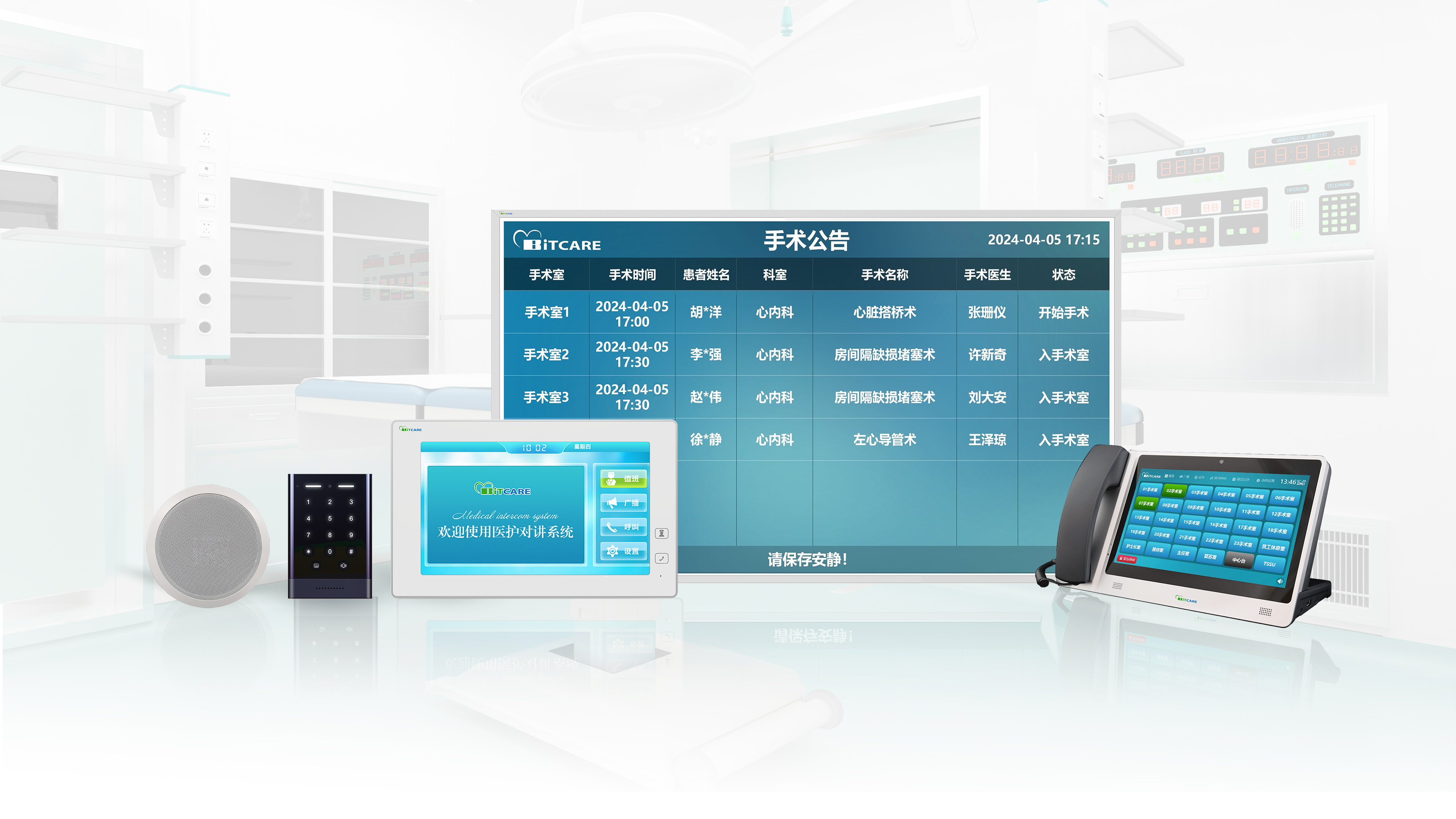 聚焦围手术期质量提升,方案整合了手术室对讲、信息发布与门禁管理功能。借助专业级对讲设备,手术室与麻醉科、供应室等科室实现无缝沟通;通过手术室状态显示屏实时同步手术动态,既提升了手术团队的协作效率,也让家属能够及时了解手术进程,缓解焦虑情绪。