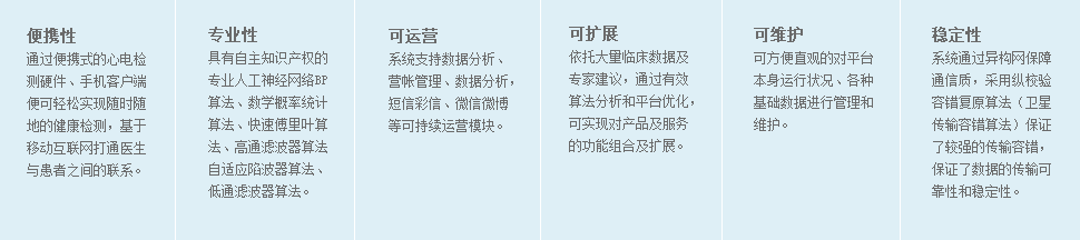 依托iH³C——竹信互联网健康管理系统,围绕心脏健康建立一套完整的管理及服务机制,为患者和医生之间搭建沟通桥梁,建立精准的心理、生理心脏健康档案,以云平台为核心,通过便携心电仪、专家APP和患者APP,构建随时随地的心电监测、智能初筛结果、医生指导