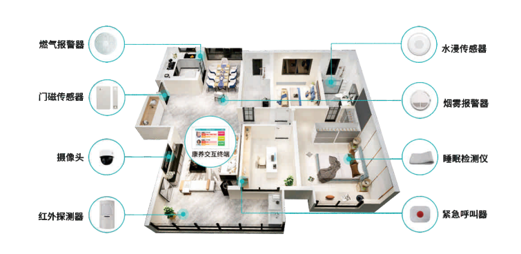 《城市居家适老化改造指导手册》的发布,为居家适老化改造提供了具体指导。手册针对不同场景,提出了相应的改造要点。以指导要点为核心,全视通在医康养物联网平台的基础上,引入各类智能化设备,对长者的居家环境进行全方位的改造和升级。